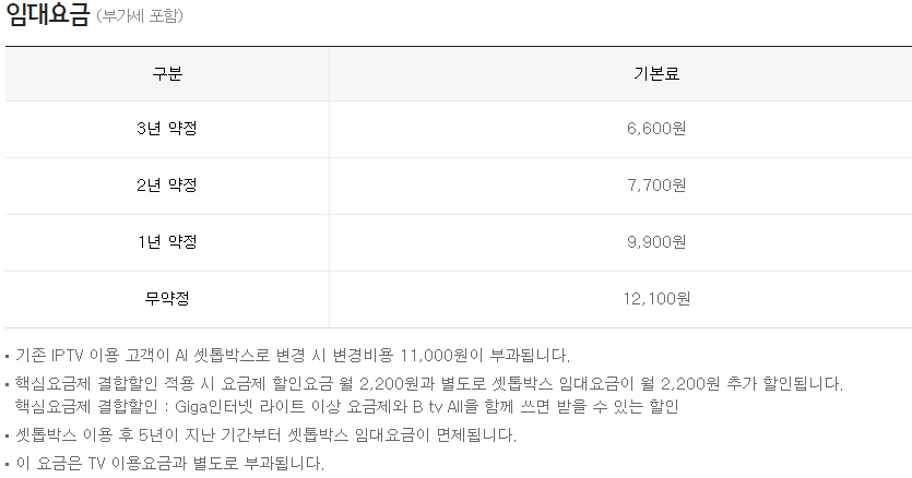 SK BTV는 6가지의 셋톱박스를 출시 했어요 각각의 스펙이나 가격이 다르니 더 정확한 정보전달을