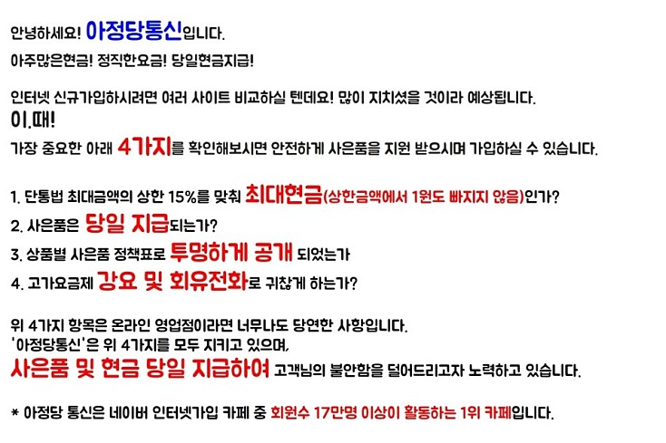 (다른 통신사와 비교를 했을때이며 모든 고객님의 마음에 들수는 없겠죠..)