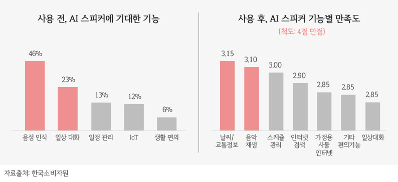 반면 휴대전화와 연결될 시 매너모드가 아닌 상태에서는 다른 조작을 할 때 스피커에서 나오는 노래가 멈춰버리는 현상이 발생한다는 의견도 있어 이부분은 보완이 필요해 보입니다. 또한 티비와 연결하면 그 속도가 조금 느려진다는 평도 있습니다. 스케쥴을 음성으로 추가하는 것이 불가능한 점도 아쉬움으로 남습니다.