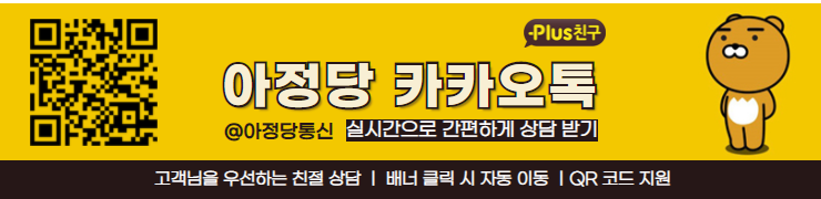 제가 가입했던 아정당통신은 그럴 염려가 전혀 없으니까요. 한번 전화하고, 비교해보시는 게 어떠실까요? 바로 상담 가능한 카카오톡 링크와(이미지 클릭), 오전 8시부터 오후 10시까지 상담하는 전화번호를 남겨드릴게요.