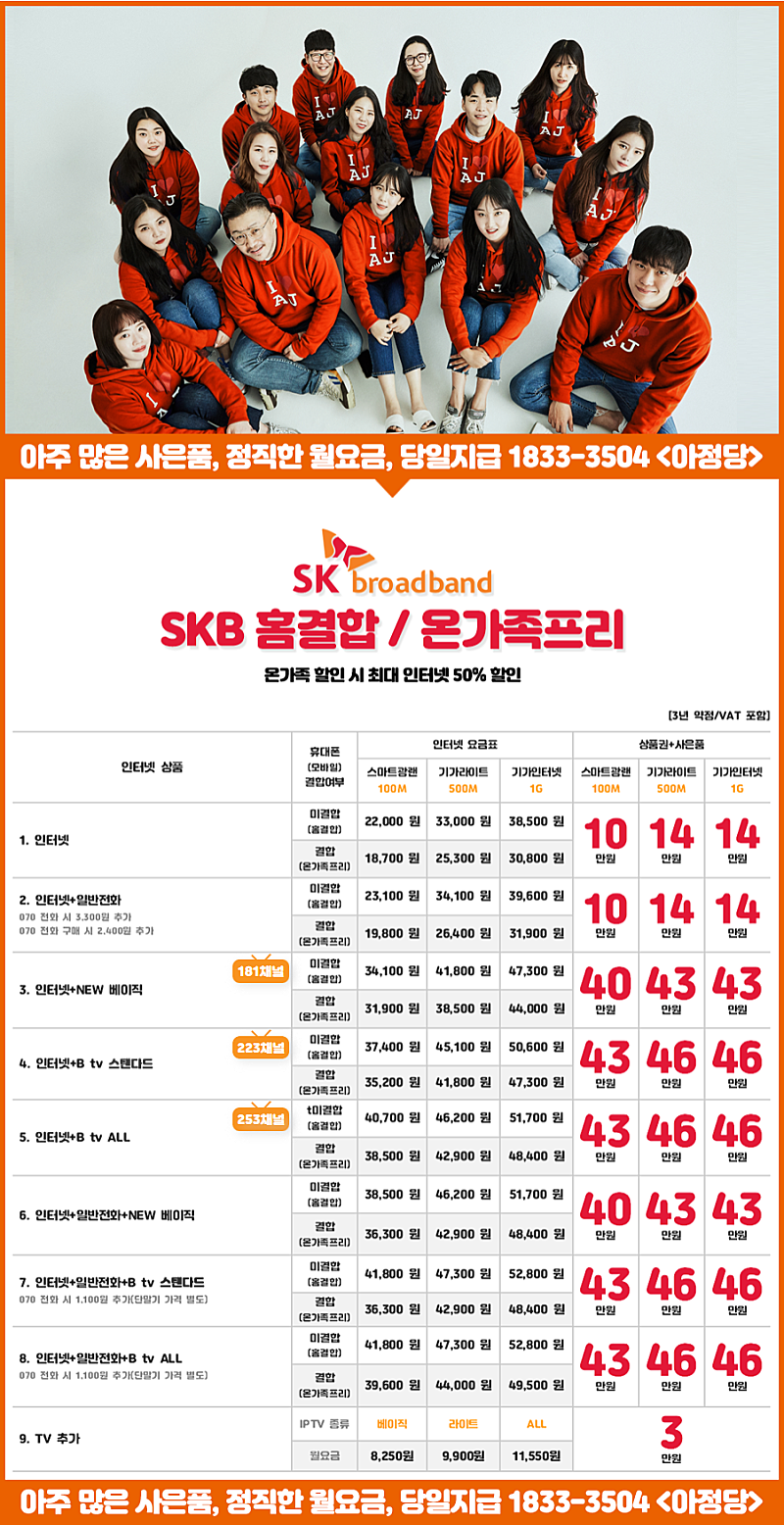 SK 요금표 및 사은품 표를 첨부해 두었으니까요. 참고해주세요.
