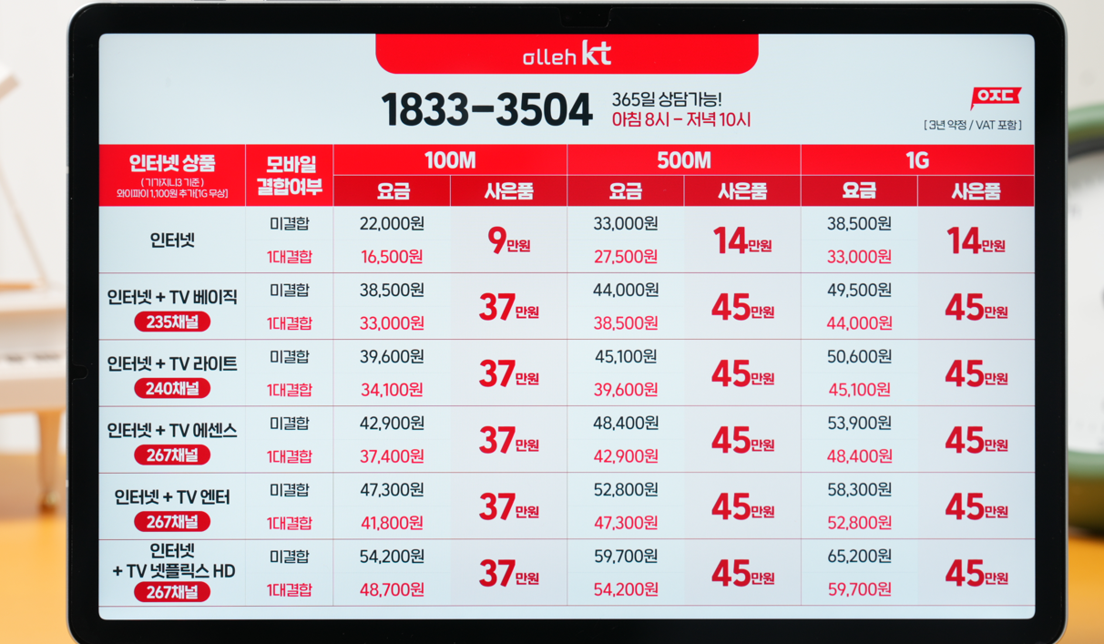 인터넷과 TV 결합 상품의 경우 사은품 혜택도