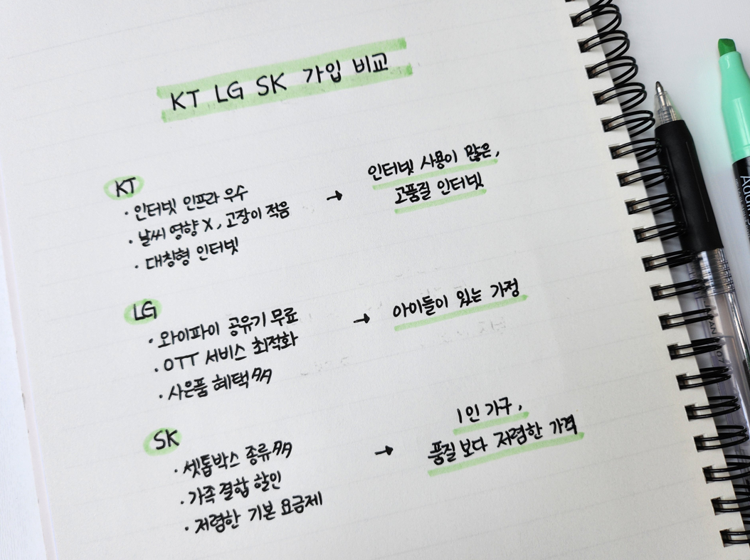 인터넷 3사 각각의 장단점 한눈에 파악하기!