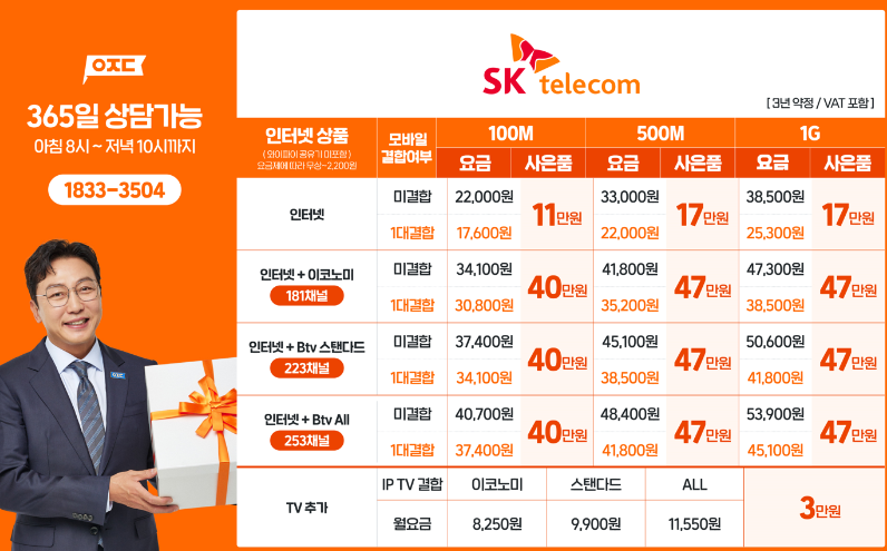 3️⃣ 마지막 인터넷가입 현금사은품많이주는곳은?