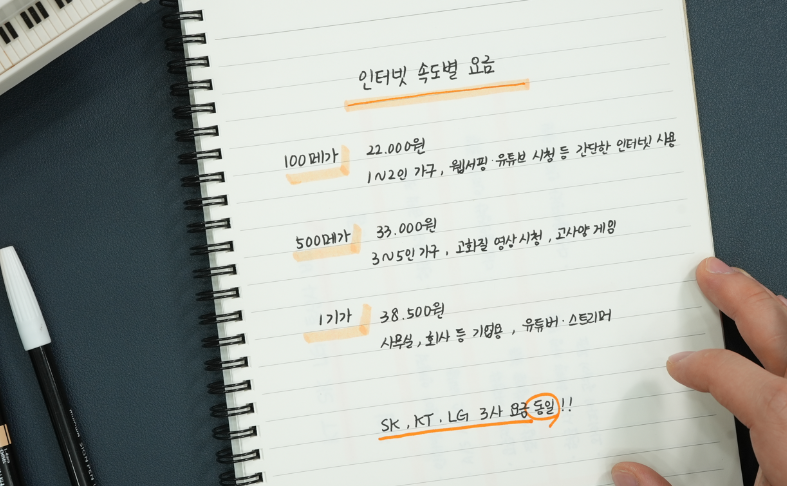 500메가 이상은 기가인터넷으로 분류돼요