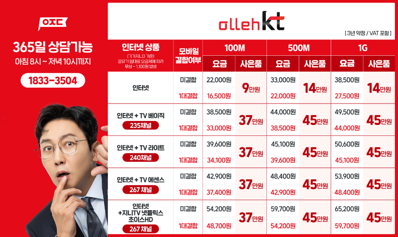 인터넷 설치 현금 혜택을 가장 많이 지원해요